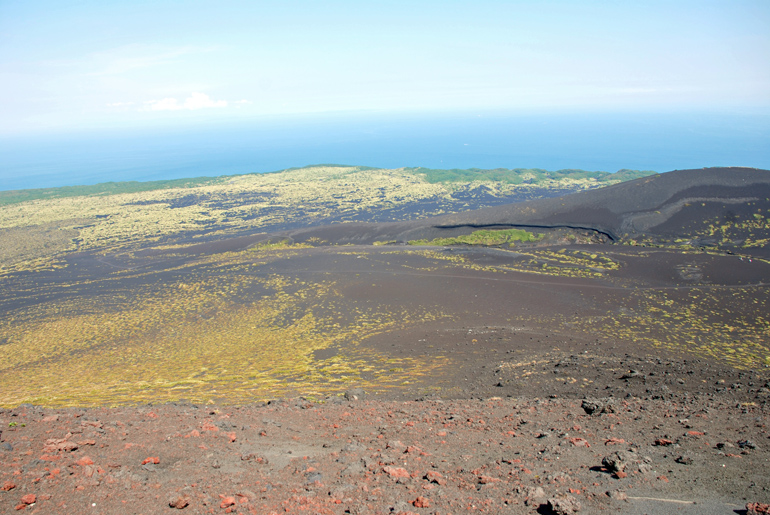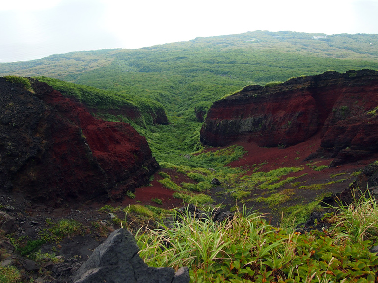伊豆大島は珍しい黒色の玄武岩で覆われており、島の東側には細かい玄武岩からなる黒色の砂漠「裏砂漠」が広がっています。