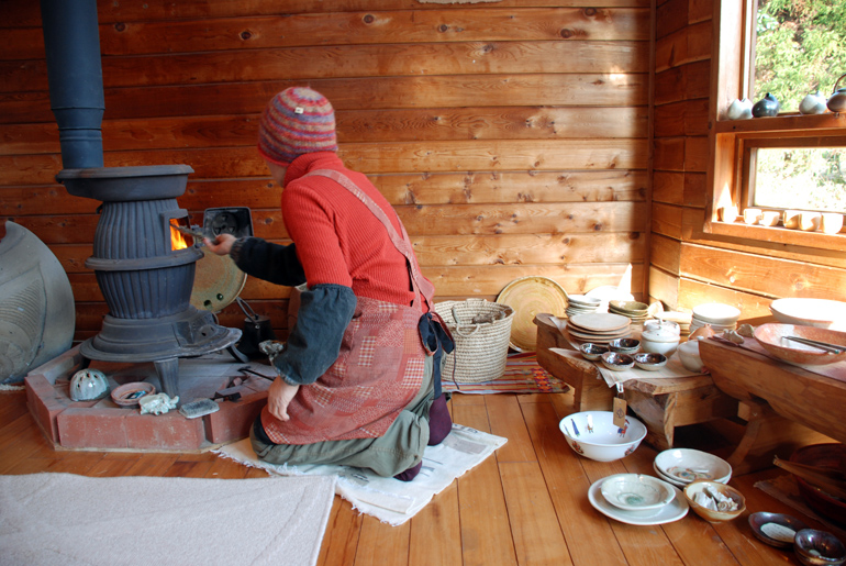 伊豆大島で陶芸を営む川浪ときわさんのアトリエを訪ねました。