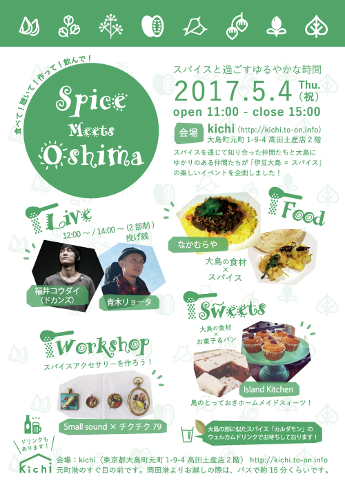 スパイスと過ごすゆるやかな時間。「食べて!聴いて!作って!飲んで!Spice Meets Oshima」へ、ぜひ遊びにきてください♪